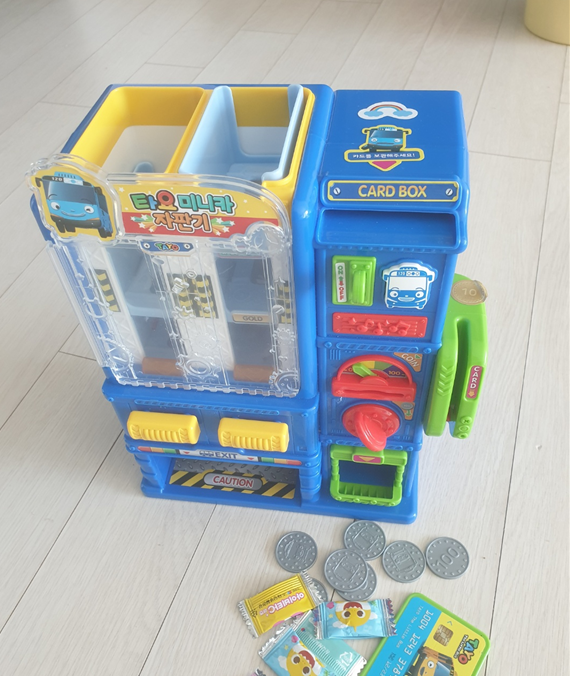 조카 선물이나, 평소 자판기를 좋아하는 아이가 있다면 이 타요 말하는 자판기를 사줘보세요! 간식 먹을때마다 놀이도 하고 동전을 넣어 소근육 발달에도 도움이 돼요. 카드 결제가 되니 요즘 트렌드에도 잘 맞는 자판기 장난감입니다. >. <