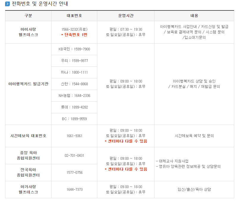 아이사랑 홈페이지의 가장 하단에 전화번호 안내 매뉴에 들어가, 아이사랑 헬프 데스크에 전화 문의를 하였습니다.