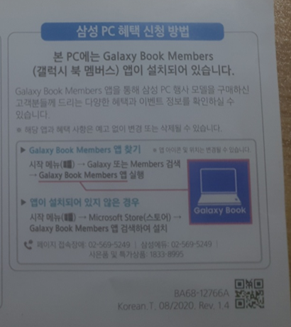 노트북에는 갤럭시 북 멤버스 앱이 설치되어 있어요. 바탕화면에 있습니다. 갤럭시 북 노트북을 구매한 사람들에게 주는 다양한 이벤트와 혜택이 있습니다.