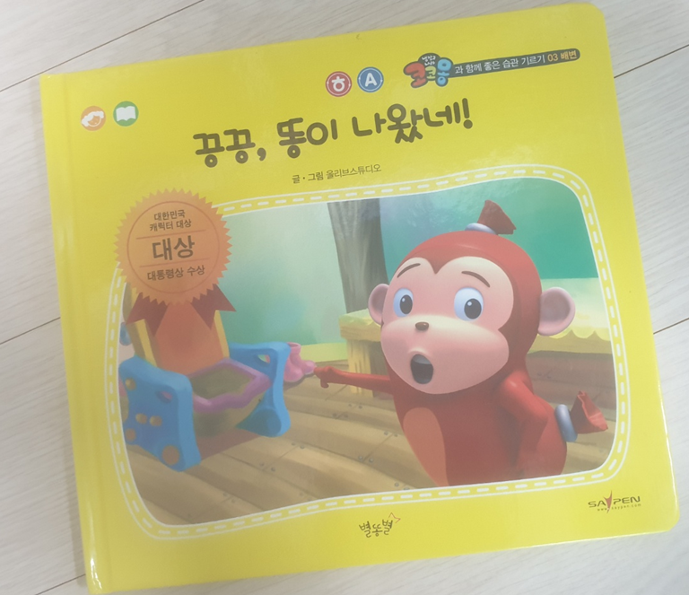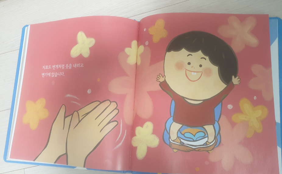 사실 아기 기저귀 떼기를 위해서 22개월 정도에 유아 변기는 사놓긴 했었습니다. 그때 아이가 변기에 관심을 보이고 한 번씩 앉아 보기도 하더라고요. 배변훈련책도 여기저기서 받은 게 있어서 읽어 주었습니다. 하지만 꾸준히 신경 쓰지 않다 보니 그냥 그 시기를 놓치고 쭉 기저귀를 찼습니다.