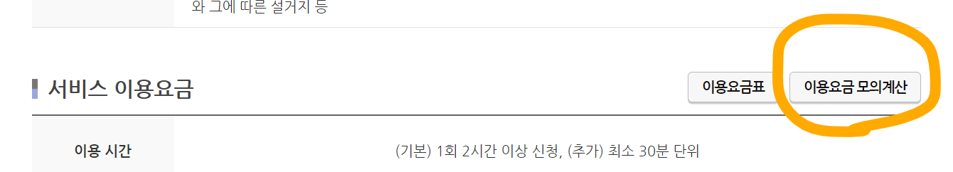 또는 아이돌봄서비스 누리집 사이트의 서비스 소개 - 시간제서비스 페이지 중간에 '이용 요금 모의 계산' 버튼을 눌러 정확한 요금을 파악해보세요.