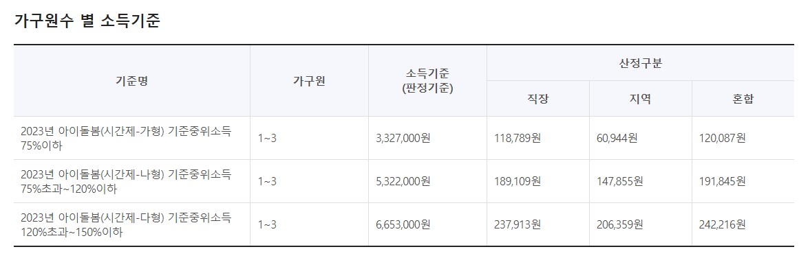 - 다형: 소득 기준(기준 중위소득) 120% 초과 150% 이하