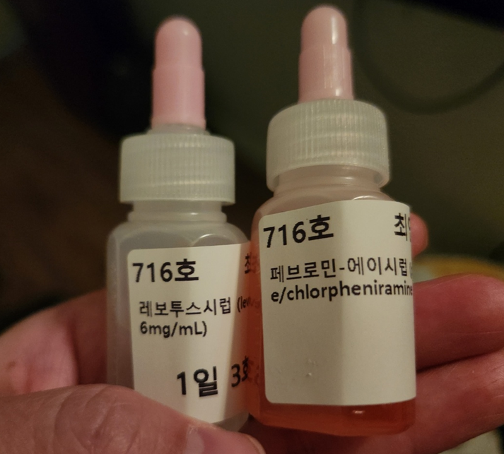 항생제는 3일 링겔로 맞아서 더이상은 항생제 처방은 해주지 않으셨고, 기침 , 콧물 약만 처방받아 집으로 돌아왔습니다.