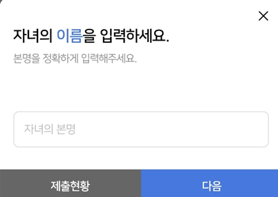 - 자녀의 이름을 입력하고 다음을 눌러줍니다.