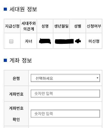 나는 스마트 폰으로 1분 만에 신청을 했는데 본인 핸드폰 인증만 하면 아주 간단하게 신청이 완료된다. 내 자녀도 함께 바로 신청이 가능하다. 지급 신청할 항목에 자녀도 함께 뜬다. 만약 내가 자녀까지 신청을 했으면, 남편의 신청 가능 목록에는 자녀가 뜨지 않는다.