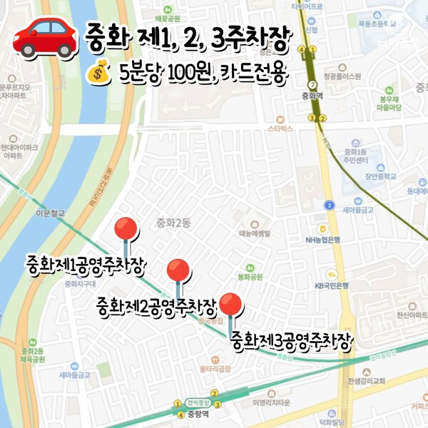 - 중랑천 공영주차장 : 카페와 도보로 약 5~10분 거리