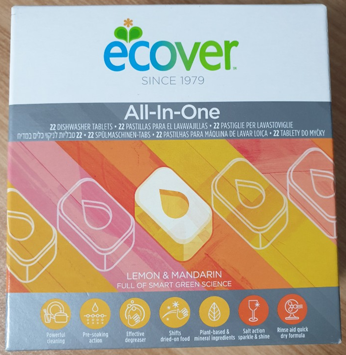 식기세척기 세제를 사용해본 적이 없어서 이것 저것 모두 다 사용해보기로 했다. 액체형도 써보고 고체형도 써보고 노브랜드 제품도 써보고 온라인으로도 주문해보고. 참 다양하게 써보았다. 모두 써본 결과 가장 만족 스러웠던 것은 ecover 에코버올인원 타블렛 식기 세척기 세제였다.
