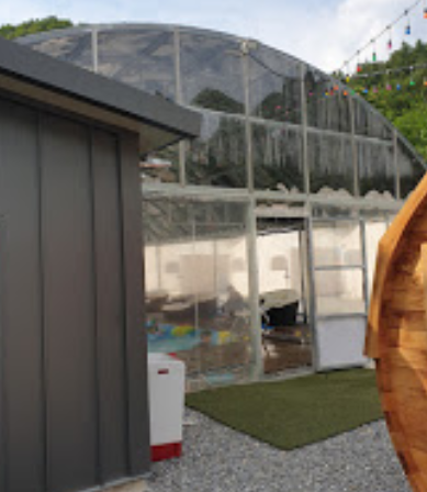 글램핑 장 중앙에 수영장이 있어요. 안에 물도 따뜻하고 수영장 안도 찜통처럼 덥기 때문에, 물놀이를 하고 나오면 적당히 따뜻해서 아이도 감기 걸릴 걱정이 없었어요. 튜브를 사용할 수 있고 낮에 정말 많은 아이들이 풀장에서 놀았답니다. 엄마 아빠들이 열심히 아이들과 놀아주시더라고요. ㅎㅎ 물 깊이는 성인에게는 허리~가슴까지 오는데 아이들에게는 깊기 때문에 꼭 부모님과 함께 들어가는 게 좋아요. 저희 아이는 튜브가 낯설어서 그런지 엄마 아빠 품에 안겨서 수영장만 왔다 갔다 하다 왔네요..ㅎㅎ 수영장 옆에는 탈수기도 있어요!