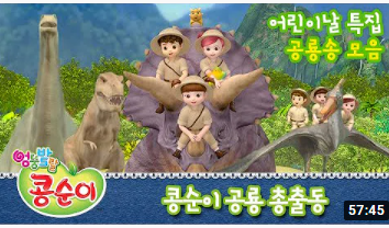 콩순이 만화는 노래가 많이 없고 대부분 대화 내용이긴 한데 재밌게 잘 보더라고요. 거기서 엄마가 전화기를 귀와 어깨에 끼고 받는 장면이 있는데, 그것을 꼭 따라 합니다..ㅎ 그리고 콩순이 공룡 편도 아주 재밌게 잘 봤어요. 수십 번은 본 것 같네요.. 요즘은 콩순이를 덜 보네요. 많이 봐서 이제 지겨운가 봐요..